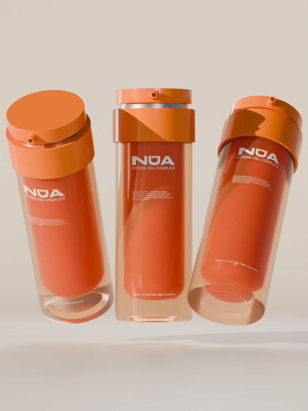 3D-Visualisierung: Vollständige Modellierung, Texturierung und Lighting der Produktflasche in Blender nach nur zwei Wochen Einarbeitungszeit.